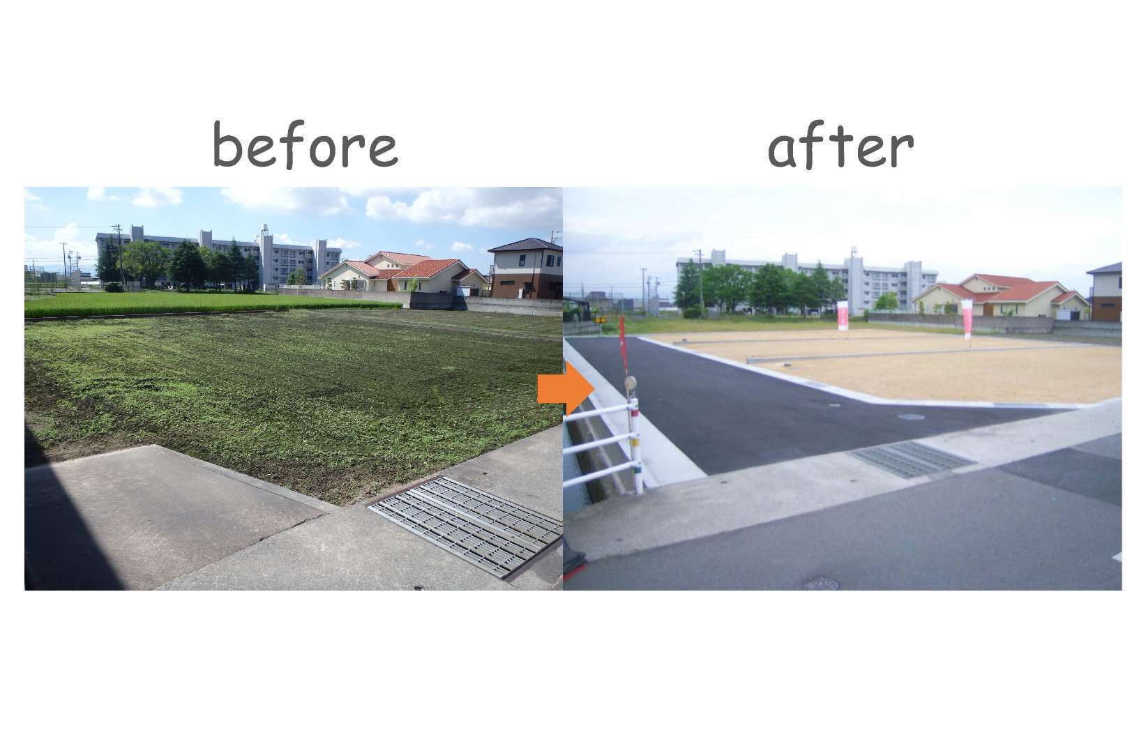 松下土建では、農地や荒地の造成から宅地分譲の基盤整備まで、トータルでサポートしております。